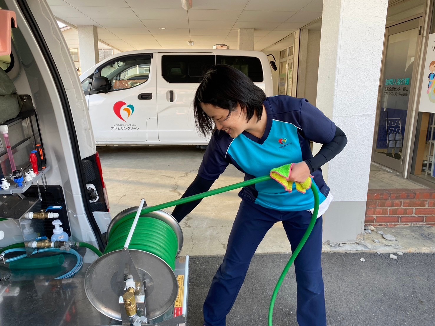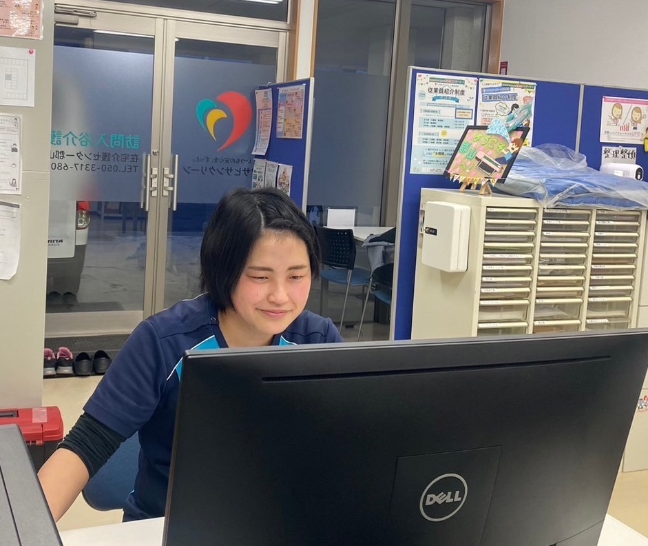 入社当初はヘルパーとして配属となり、昨年からは入浴車の運転などもしております。尊敬する先輩方にはまだ追いつきませんが、頼れる皆さんにたくさんのことを教えていただいています。